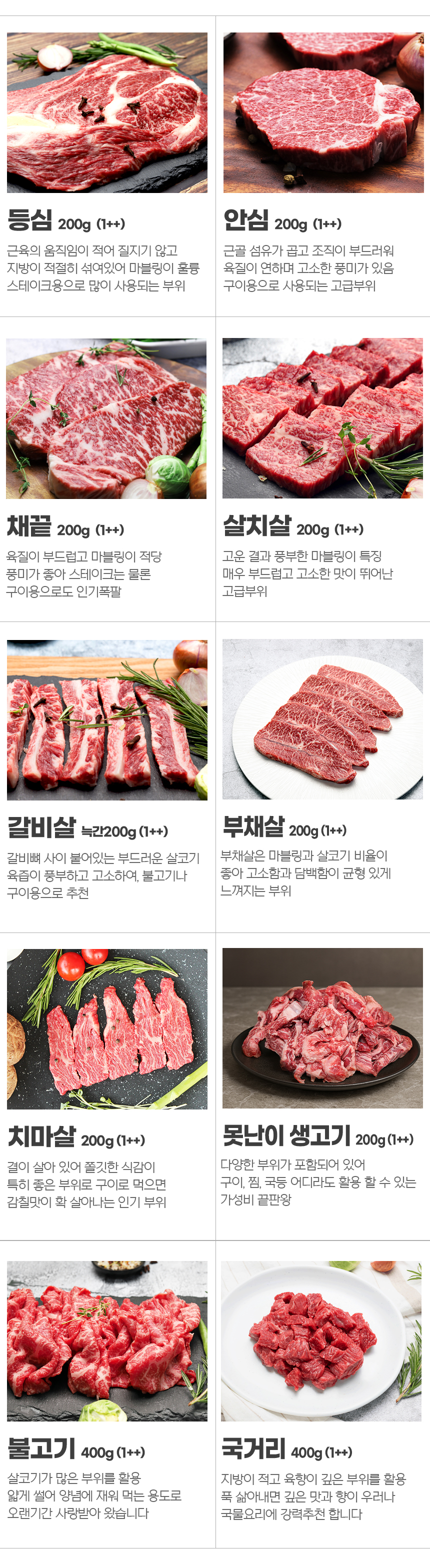 1++ 한우의 주요부위 모음전입니다.